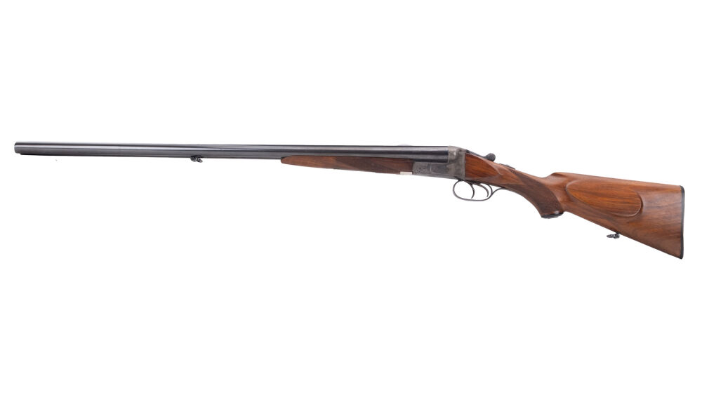 Doppelabzug, Schiebesicherung am Kolbenhals, Lauflänge: 72 cm, Schaftlänge: 36 cm. Bitte beachten Sie unsere Erwerbsinformationen! ...weiterlesen