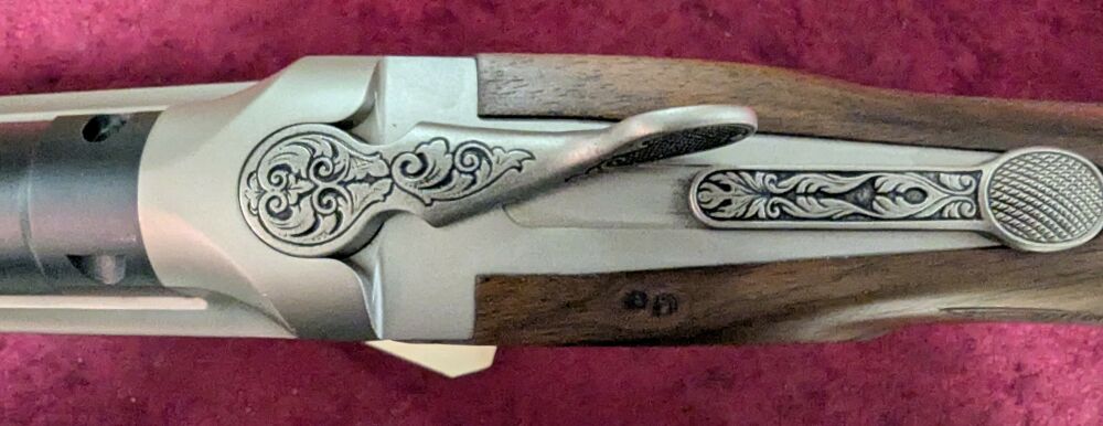 Neuwaffe Blaser K95 Luxus im Kaliber .30-06 Spring. Lauflänge 58 cm Schaftlänge 36,5 cm Gravurplatten Englische Arabesken offene Visierung Bei Fragen schreiben Sie uns gerne an! ...weiterlesen