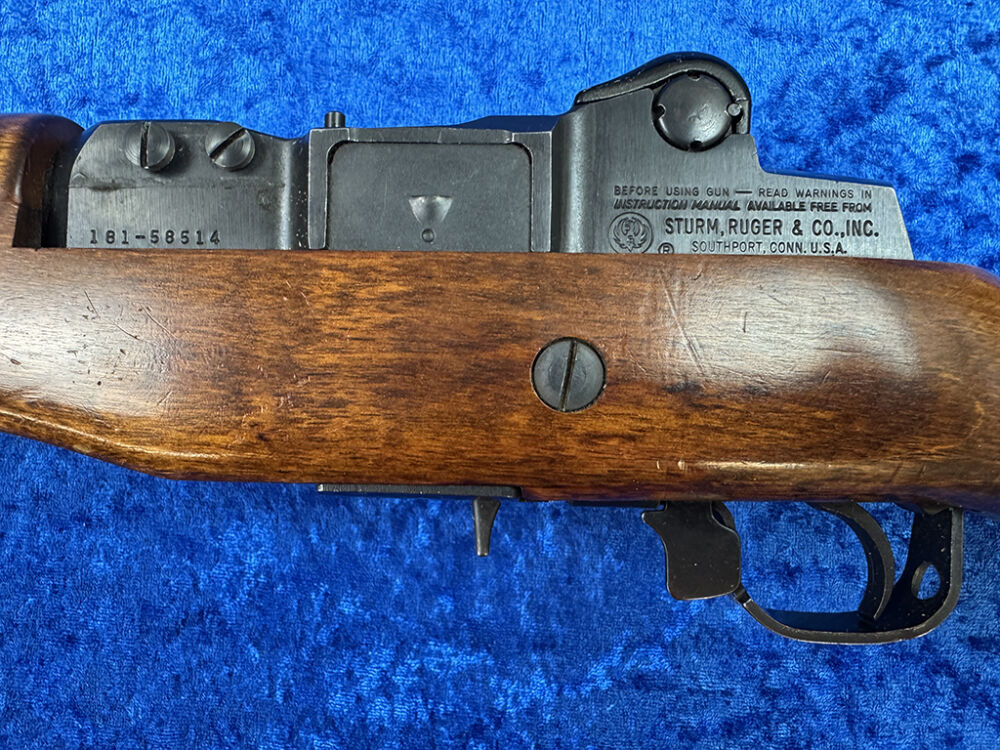 Die Ruger Mini-14 ist ein halbautomatisches Gewehr, das seit den 1970er Jahren von der amerikanischen Firma Sturm, Ruger & Co. in Southport, U.S.A. hergestellt wird. Sie ist bekannt für ihre Zuverlässigkeit, einfache Handhabung und robuste Bauweise. Das Design ist stark vom M1-Garand und M14-Gewehr inspiriert, jedoch auf kleinere Kaliber angepasst. Das Gewehr wurde von der Frankonia importiert und hat seinen Beschuss im Mail1979 erhalten.