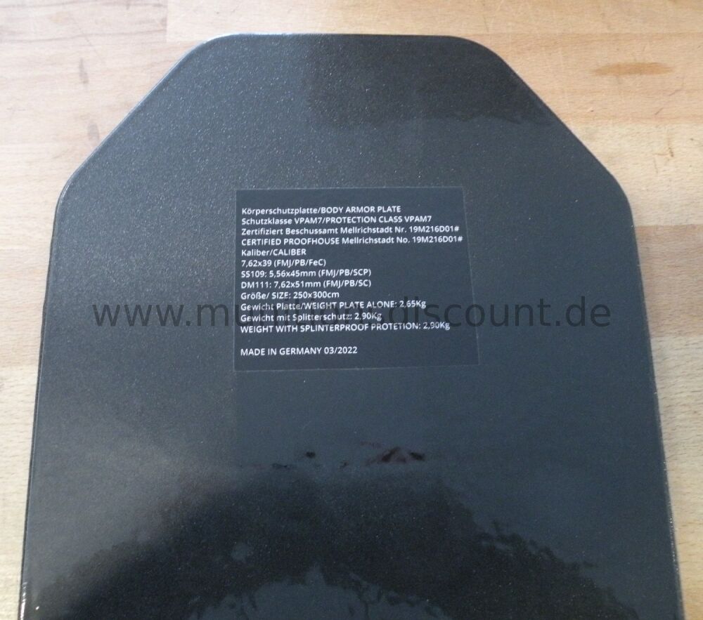 Zertifiziert vom Beschussamt Mellrichstadt. Es wird ausschließlich Stahl, aus dem getestet Lot verarbeitet. Alle ballistischen Schutzplatten sind MADE IN GERMANY. Es handelt sich um sogen. Stand Alone Platten, es wird keine zusätzlich Weichballistik hinter den Platten benötigt!