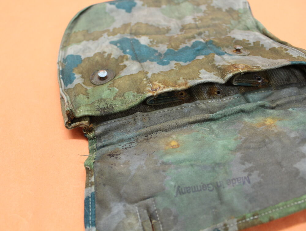 Kalashnikov AKM: Magazintasche NVA Flächentarn/ Blumentarn für 3 Stück 30-Schuss Magazine. Original NVA, jedoch innen mit Tuschestempel: "Made in Germany" (als Ursprungskennzeichnung fü... ...weiterlesen