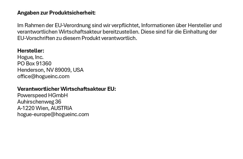 Im Rahmen der EU-Verordnung sind wir verpflichtet, Informationen über Hersteller und verantwortlichen Wirtschaftsakteur bereitzustellen. Diese sind für die Einhaltung der EU-Vorschriften zu diesem Produkt verantwortlich.