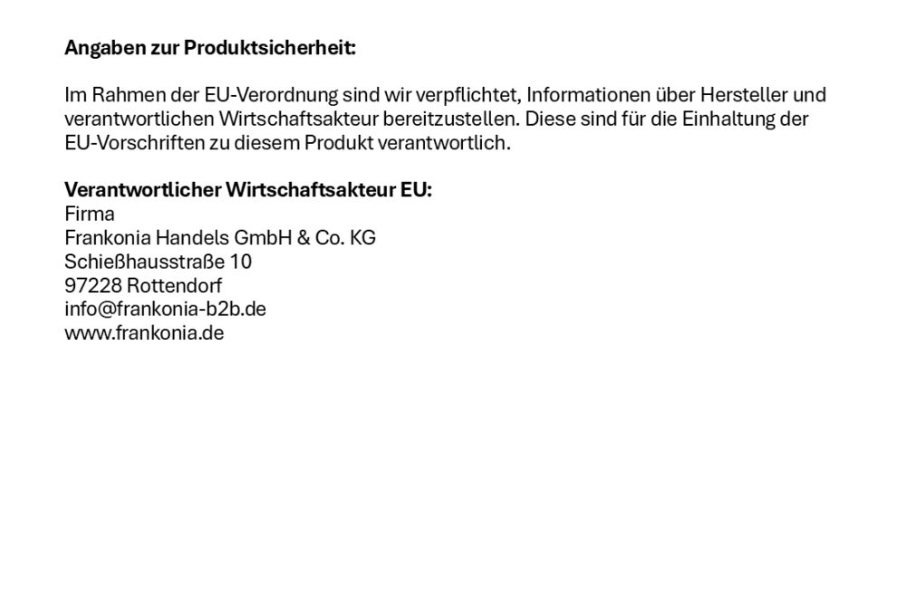 Im Rahmen der EU-Verordnung sind wir verpflichtet, Informationen über Hersteller und verantwortlichen Wirtschaftsakteur bereitzustellen. Diese sind für die Einhaltung der EU-Vorschriften zu diesem Produkt verantwortlich.