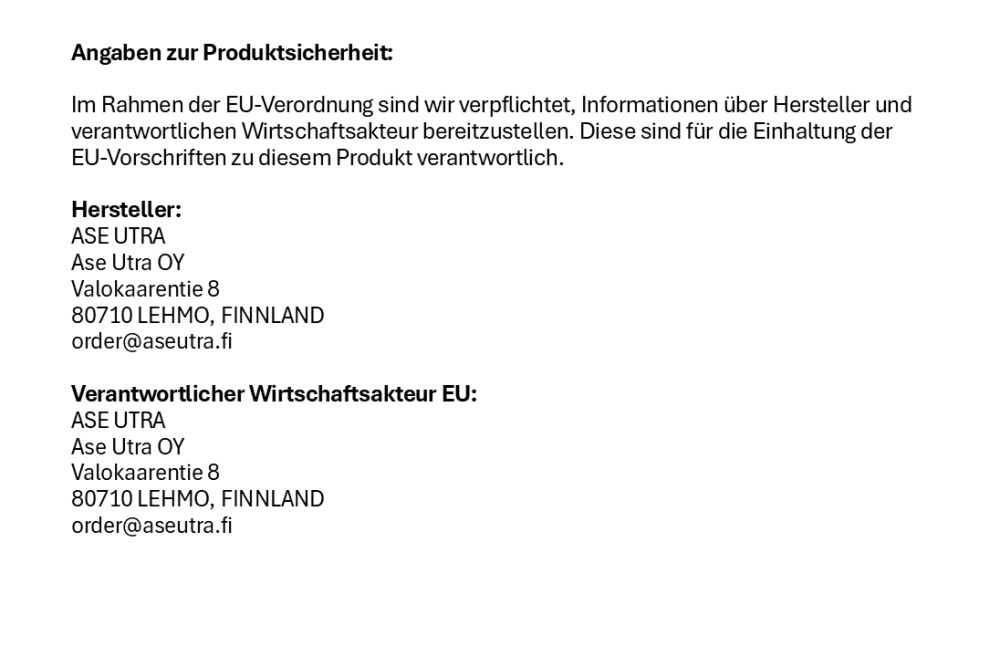 Im Rahmen der EU-Verordnung sind wir verpflichtet, Informationen über Hersteller und verantwortlichen Wirtschaftsakteur bereitzustellen. Diese sind für die Einhaltung der EU-Vorschriften zu diesem Produkt verantwortlich.