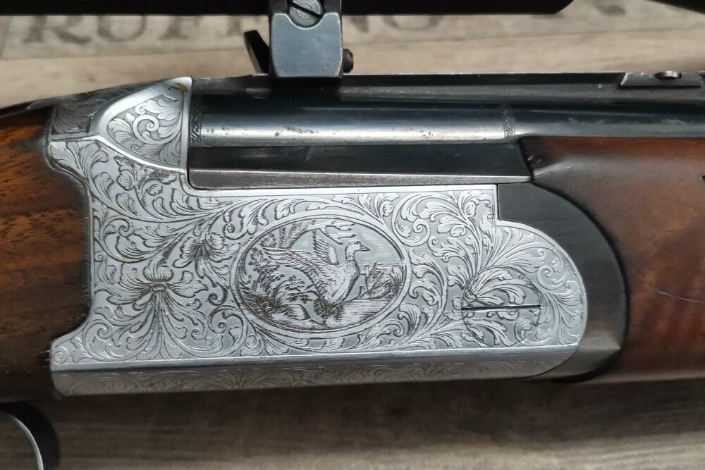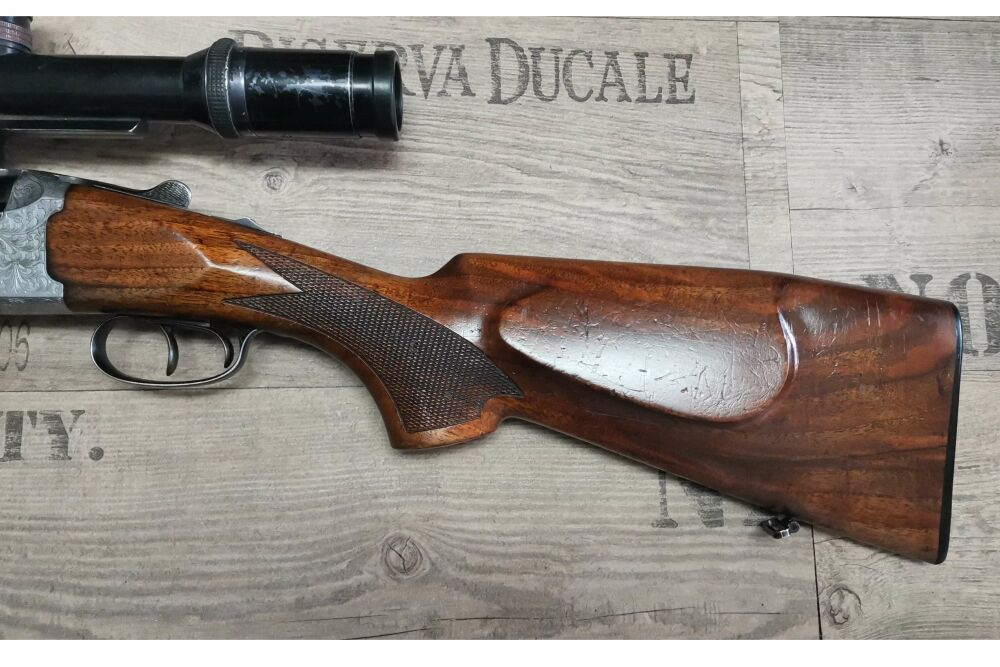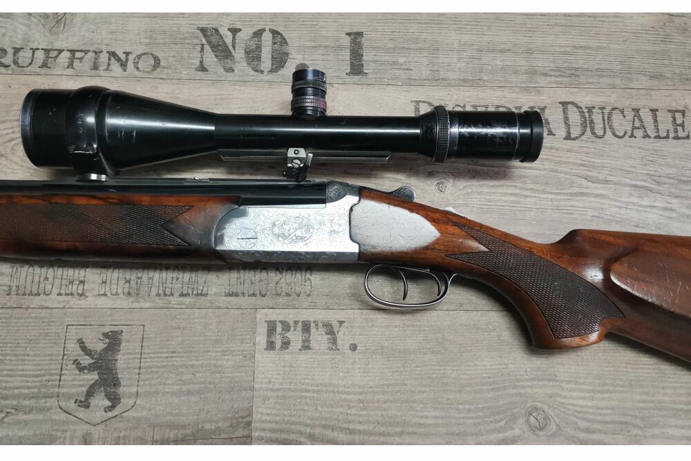 Antonio ZoliBockbüchsflinteKaliber 12/70 & 7x65RLäufe Spiegel Blank Züge und Felder ScharfFranzösischer Rückstecher AbzugSchaftlänge: 36,5cmLauflänge: 65cm inkl. PatronenlagerGesamtlänge: 109cmSta... ...weiterlesen
