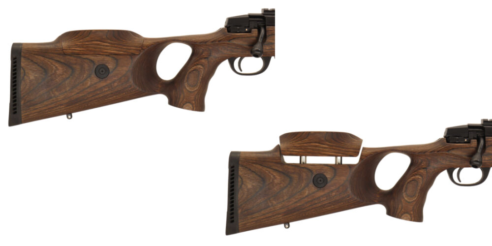 - Schichtholz- Lochschaft (dunkelbraun) mit verstellbarem Schaftrücken