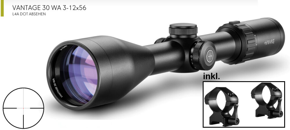 - Zielfernrohr: Hawke Vantage 3-12x56 Abs.: L4A Dot (mit Leuchtpunkt)