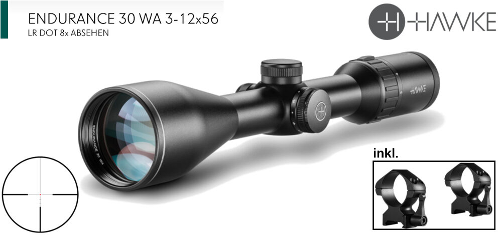 - Zielfernrohr: Hawke Endurance 3-12x56 Abs.: LR-Dot (mit Leuchtpunkt)