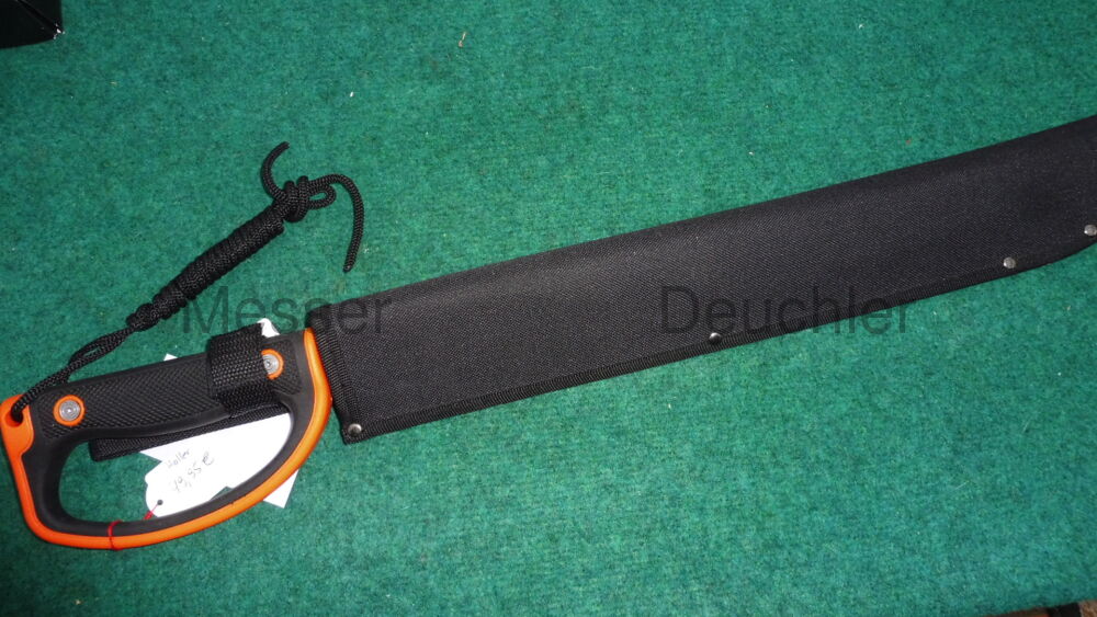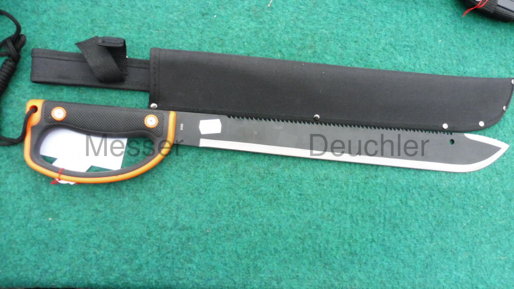 Beschreibung Machete Kräftige Machete aus schwarz beschichtetem, 420 rostfreiem Stahl mit kräftiger Säge am Klingenrücken. Der gummierte Kunststoffgriff liegt besonders rutschfest in der Hand. Zusät... ...weiterlesen