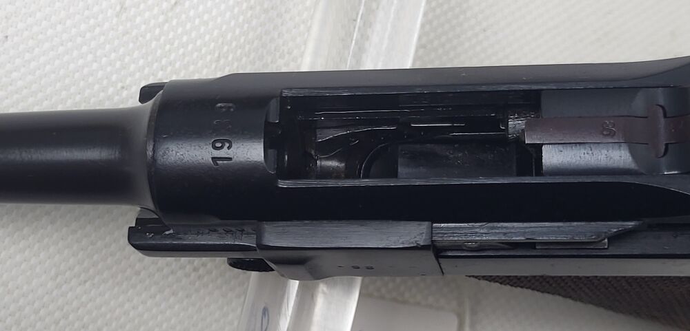Angeboten wird eine Mauser P08 S/42 von 1939 im Kaliber 9mm Luger. Die Waffe ist nummerngleich, auch das Magazin. Sie wurde nachbrüniert, Zustand gut, siehe Bilder. Lauf sehr gut, scharfes Feld/Zug... ...weiterlesen
