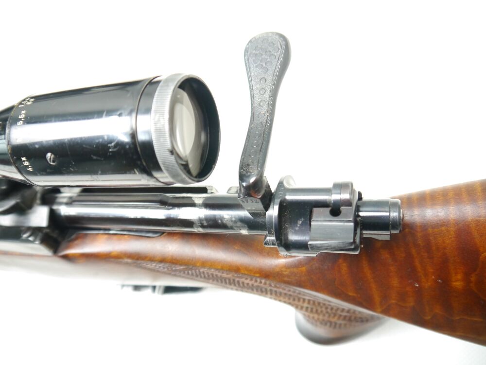 Angeboten wird eine Jagd-Repetierbüchse, System 98 im Kaliber 8x68s. Der Zustand ist gut. Sie hat hier und da ein paar Druckstellen und kleinere Kratzer in der Brünierung, nichts auffälliges. Schö... ...weiterlesen