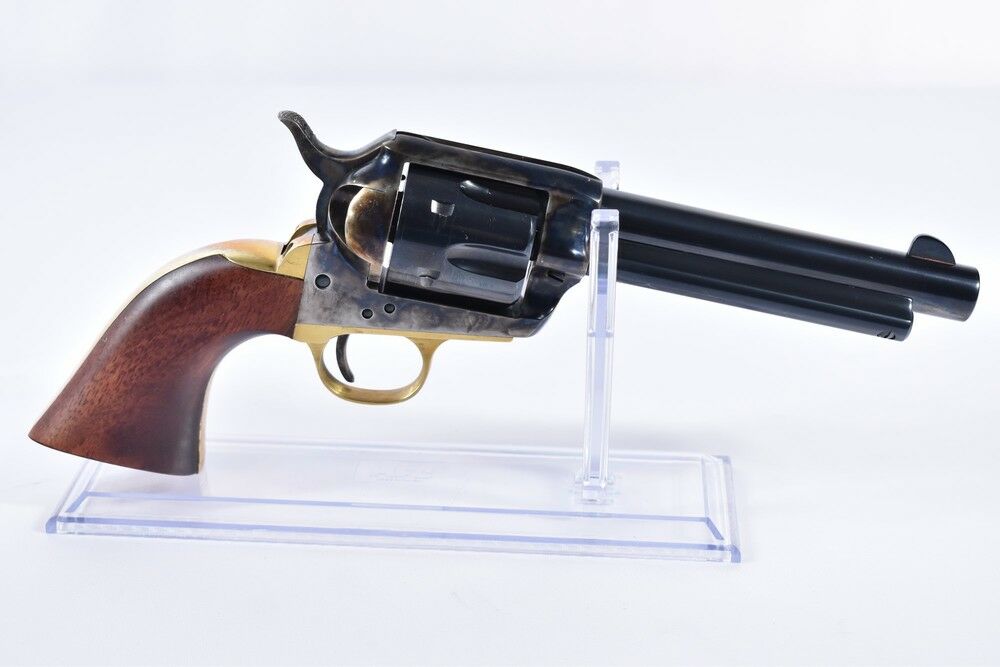 Dieser Pietta 1873 im Kaliber .357 Magnum ist ein klassischer Revolver mit einer Gesamtlänge von 28 cm und einer Lauflänge von 14 cm. Er wiegt 1,16 kg und hat eine Magazinkapazität von 6 Schuss. Der Z... ...weiterlesen