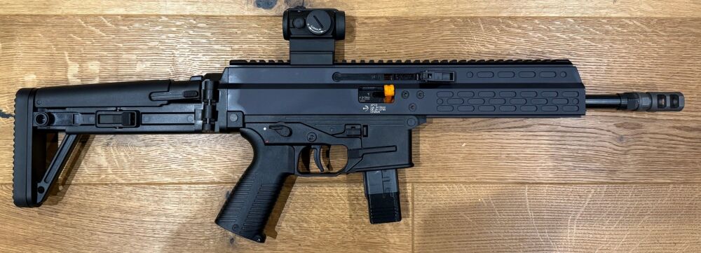 Die B&T APC9 SPORT DE ist eine hochmoderne, halbautomatische Sportwaffe, die speziell für anspruchsvolle Schützen entwickelt wurde. Mit einer Lauflänge von 270 mm bietet sie Präzision und Zuverlässigkeit in einem kompakten und ergonomischen Design.