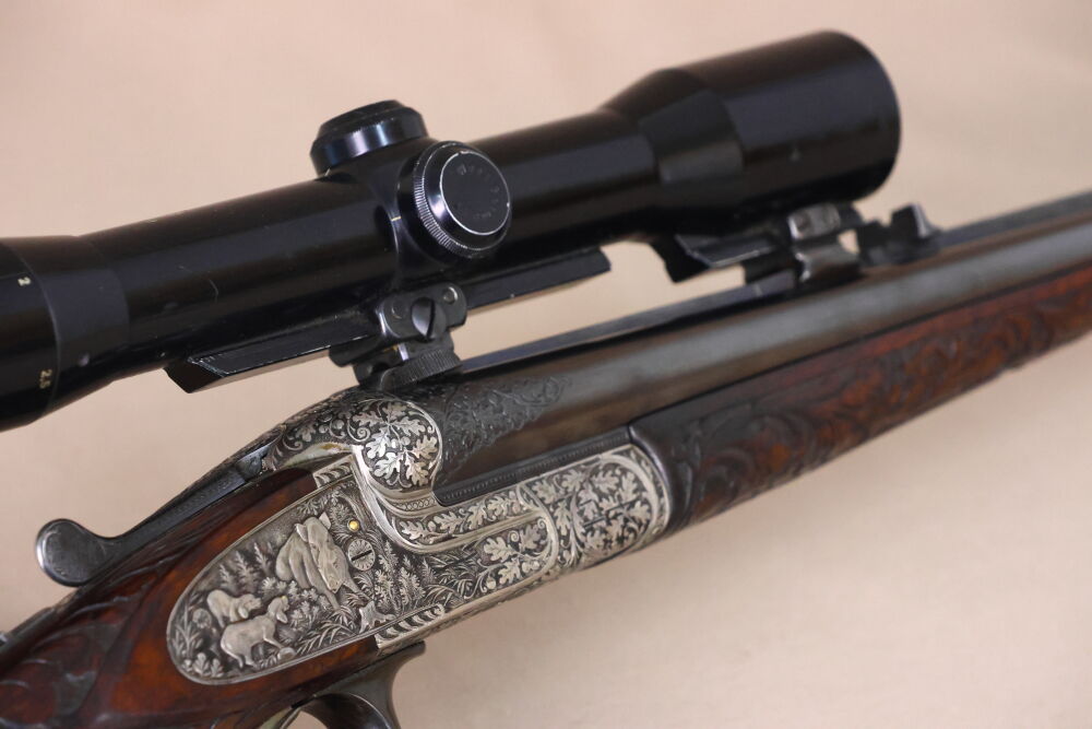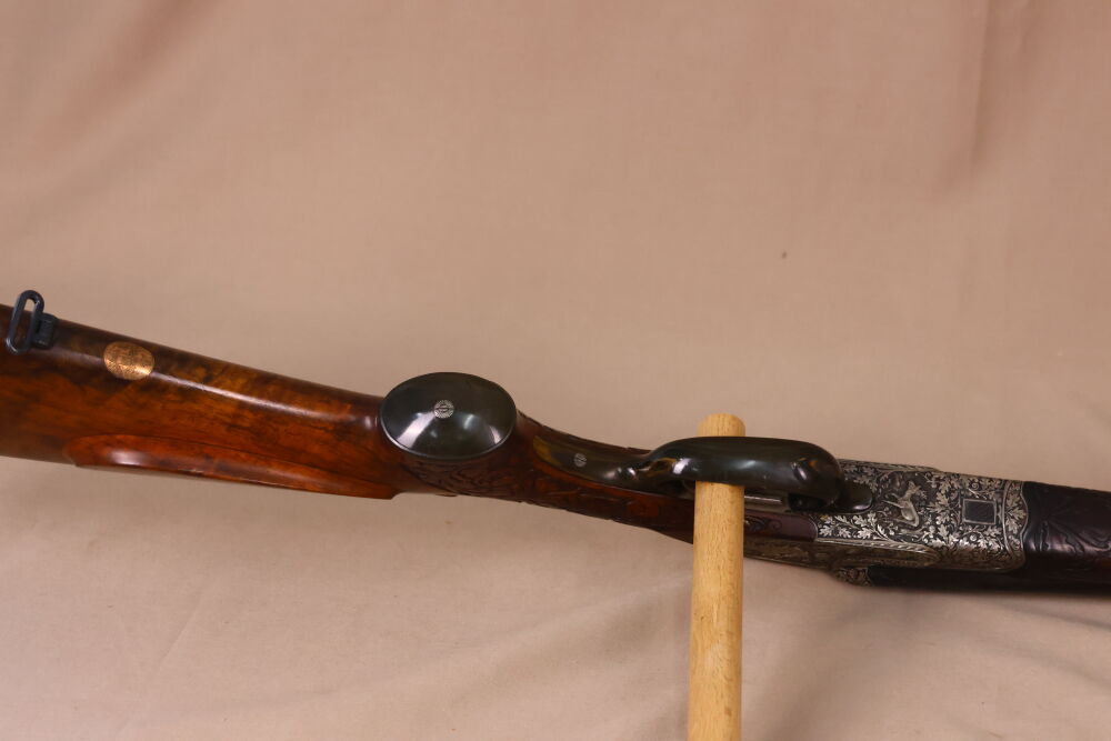 Gefertigt in höchst aufwendiger Handarbeit, mit wunderschönem Schaftholz und liebevollen Tierstückgravuren läd Sie diese Waffe bei jeder Betrachtung aufs neue zum träumen und abschweifen in die jagdlichen Szenarien ein!