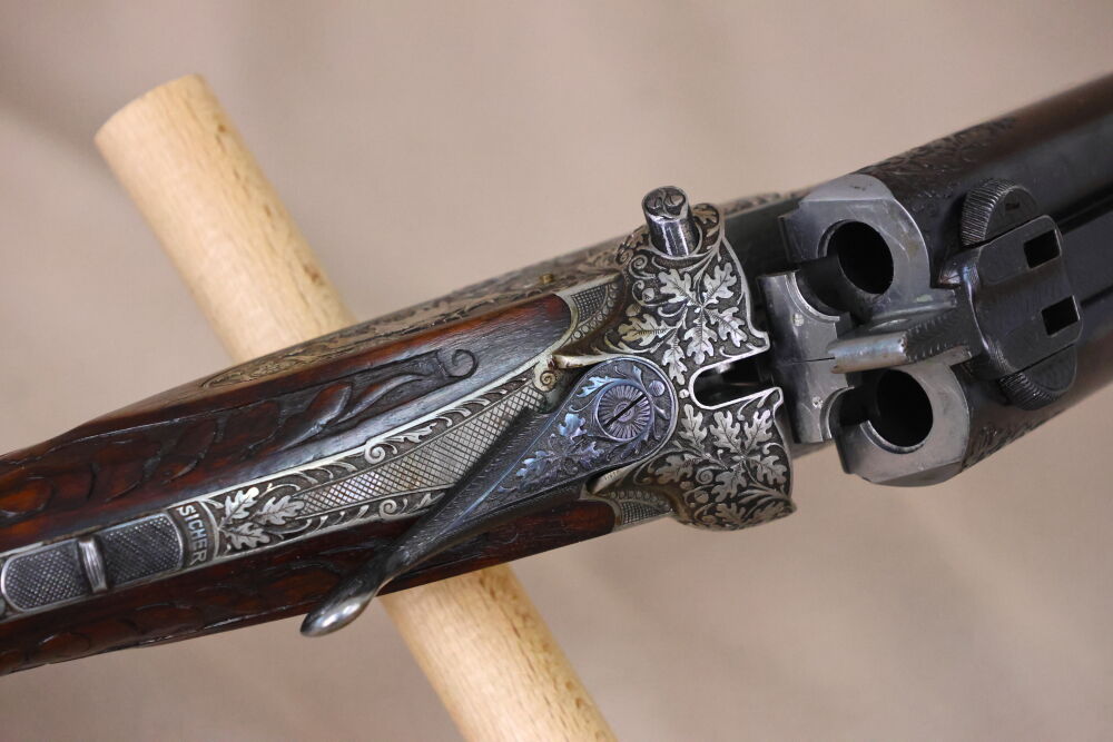 Wir bieten Ihnen hier eine sehr exklusive Doppelbüchse mit Anson-Schlossen und langen Seitenplatten des Herstellers "Zehner" / Frankfurt am Main im Kaliber 8x57IRS "aus der guten, alten... ...weiterlesen