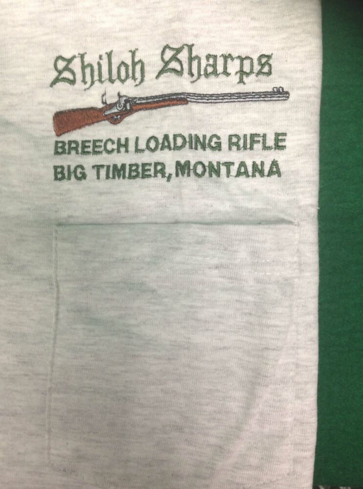 T-Shirt mit Brusttasche Shiloh Sharps, Baumwolle, Hellgrau  (mit grüner Schrift)       Größe: XL, XXL; Blau         (dunkel blaue Schrift)    Größe: XL  Blau         (Lila Schrift)             ... ...weiterlesen