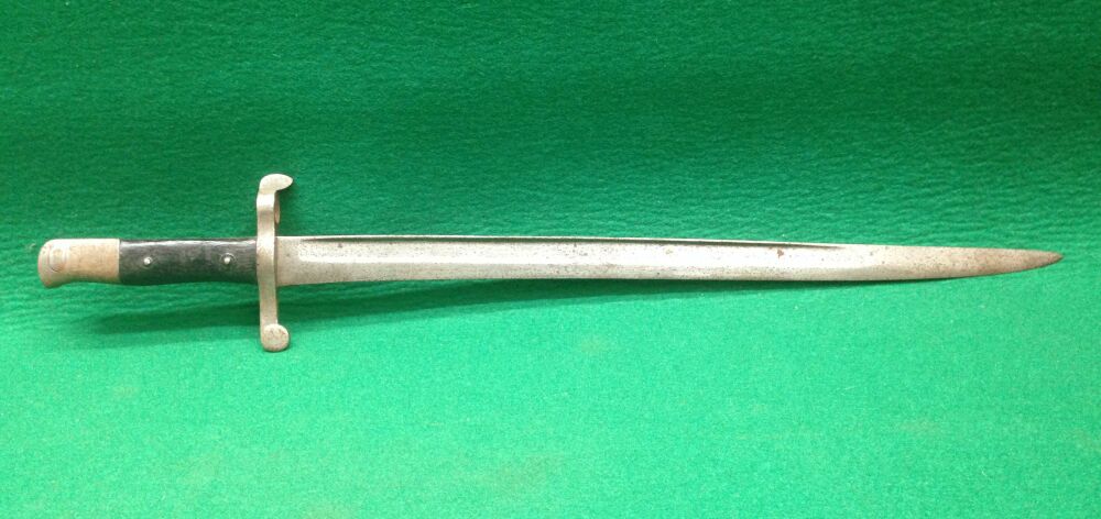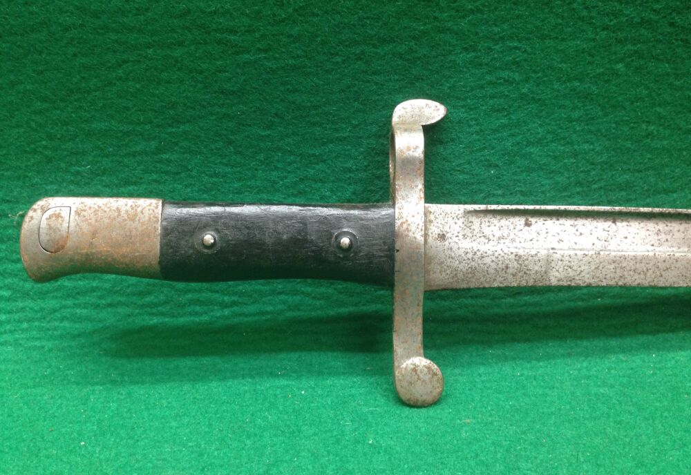 Seitengewehr / Bajonett-Schwert zum Kropatschek Gewehr M1886 Portugal, Fertigung von Steyr/Österreich (ohne Scheide) EE402, Länge ohne Scheide: ca.60cm; Klinge: ca. 46,7cm; Gewicht: 0,50kg ... ...weiterlesen