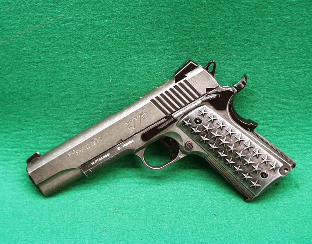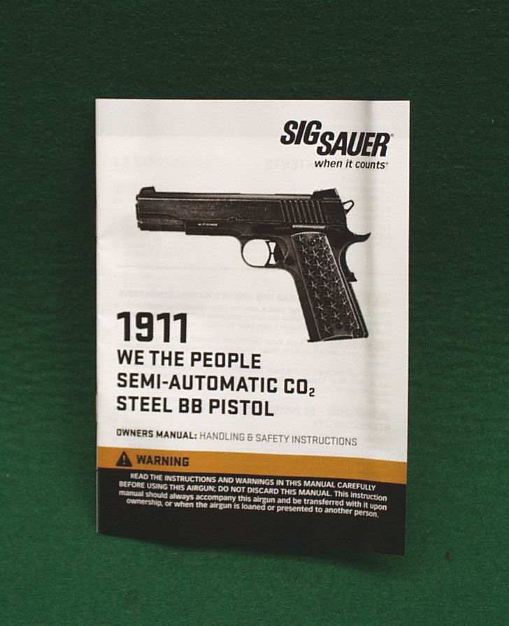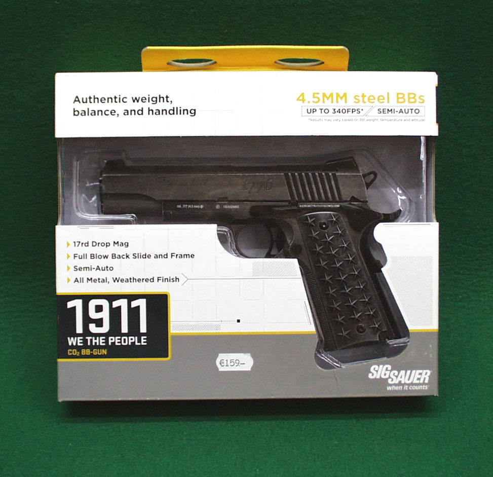 Sig Sauer 1911 WTP CO2 Pistole 4,5mm Blow Back Vollmetall Schusskapazität: 17 Schuss Energie: 2,5Joule Antrieb: 12g Co2 Kaliber: 4,5mm Stahl BB Länge: ca. 22cm Gewicht: ca. 1,0kg Die Vol... ...weiterlesen