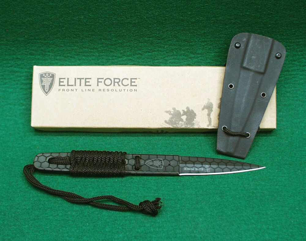 Wurfmesser Elite Force (Umarex) EF 701 Messer - schwarz beschichtete Klinge - rostfreier 420er Stahl - umwickelte Griffschalen Länge: ca. 22,5cm Klinge: ca. 13cm Gewicht: ca. 88g Frei a... ...weiterlesen