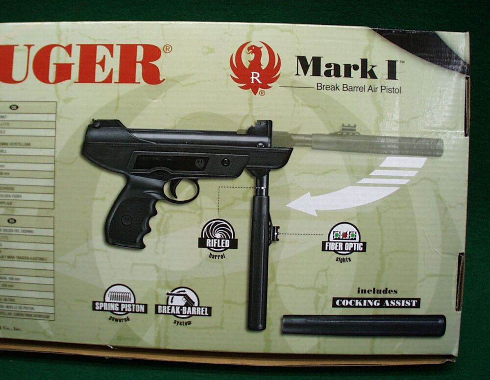 Umarex Ruger Mark I Break Barrel Air Pistole CO2 Airgun Pistole, black, Kaliber: 4,5mm(.177) Diabolo Abzug: Druckpunkt Lauf: gezogen Visierung: Korn fest und Kimme verstellbar Schusskapaz... ...weiterlesen