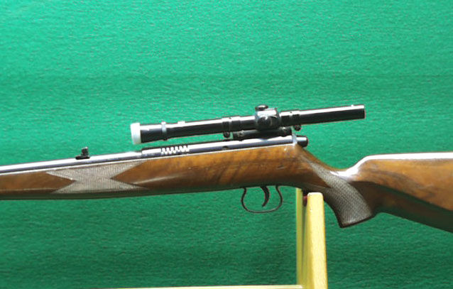 Kriegskorte Halbautomatische Selbstladebüchse  Kal.22lr mit Zielfernrohr Anschütz 4x20 Zustand: gut-sehr gut Länge: ca. 106cm Lauflänge: ca. 56cm Gewicht:  2,82kg Bei Interesse&w... ...weiterlesen