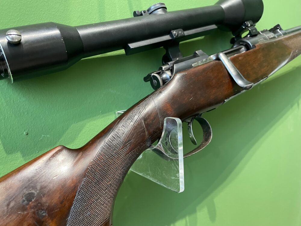 Krieghoff-Montage. Die Waffe verfügt über einen deutschen Stecher.