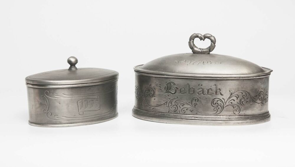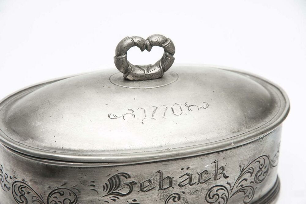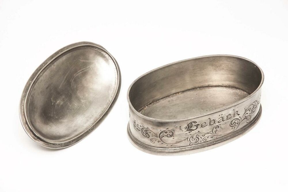 Zinndose Maße ca. 19x12x11,5 cm (die größere Dose auf dem Bild, Preis bezieht sich nur auf 1 Dose) sehr schöner Erhaltungszustand Verkauf im Kundenauftrag ...weiterlesen