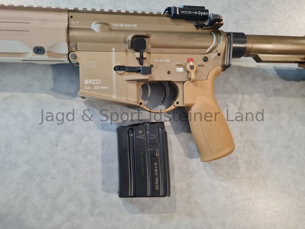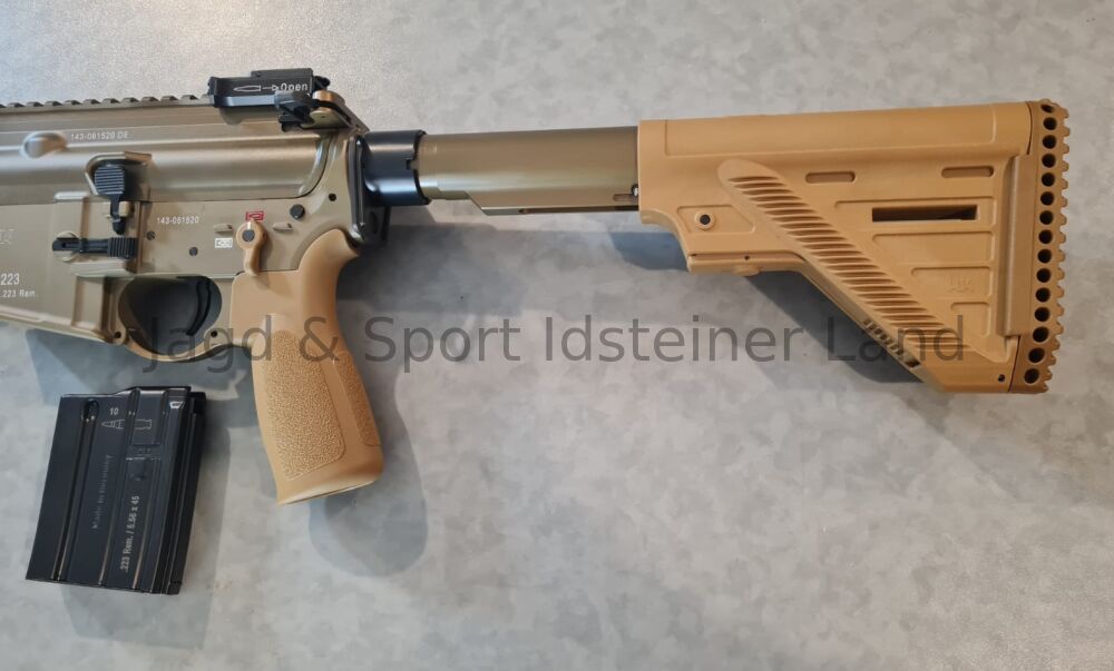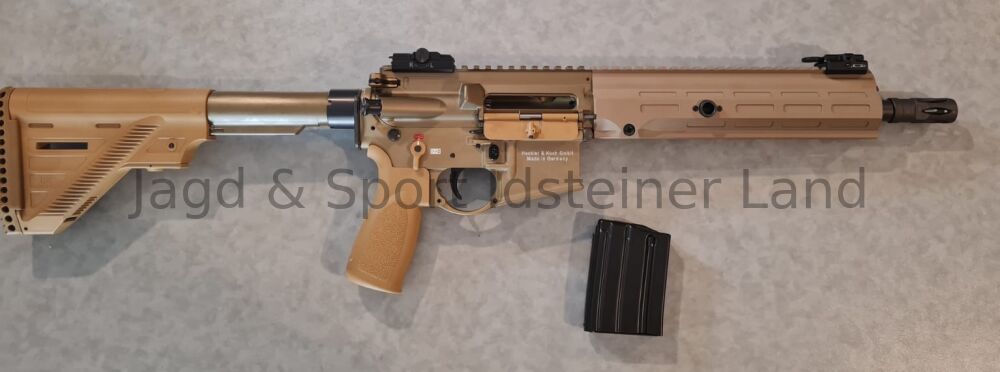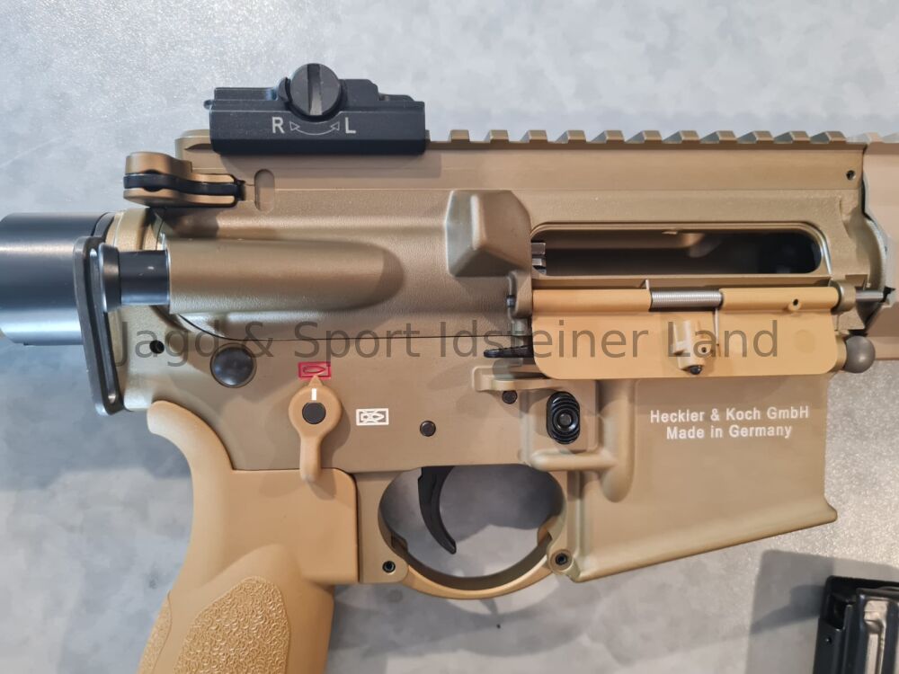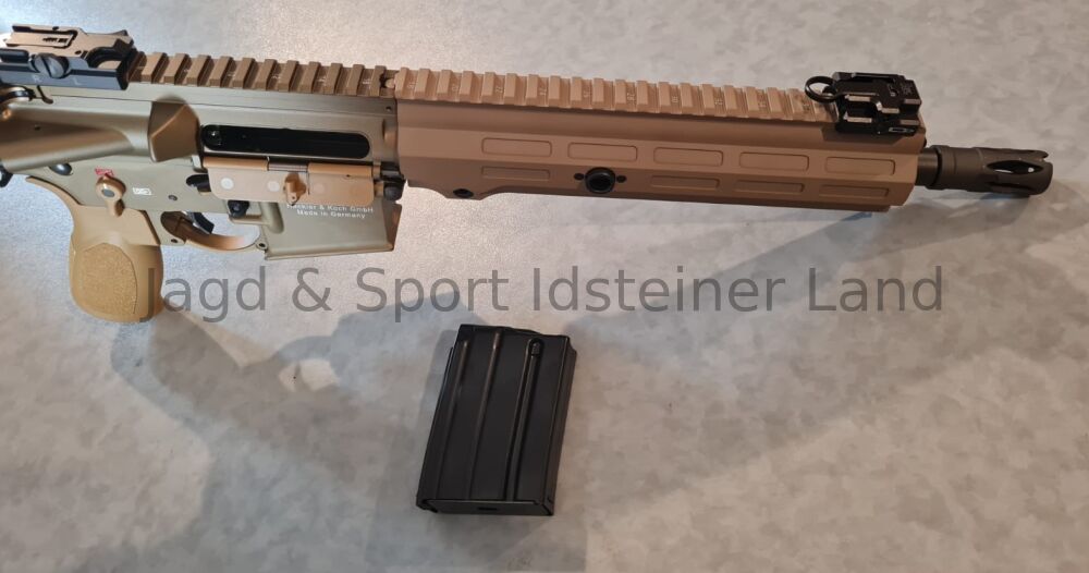 Heckler & Koch, Modell "MR223-A3", LL: 11"/ca 28cm, sandfarben, geschlossener Handschutz, sportlich zugelassen! Halbautomatische Büchse, Kat. B HK-typisch: beidseitig bedienb... ...weiterlesen