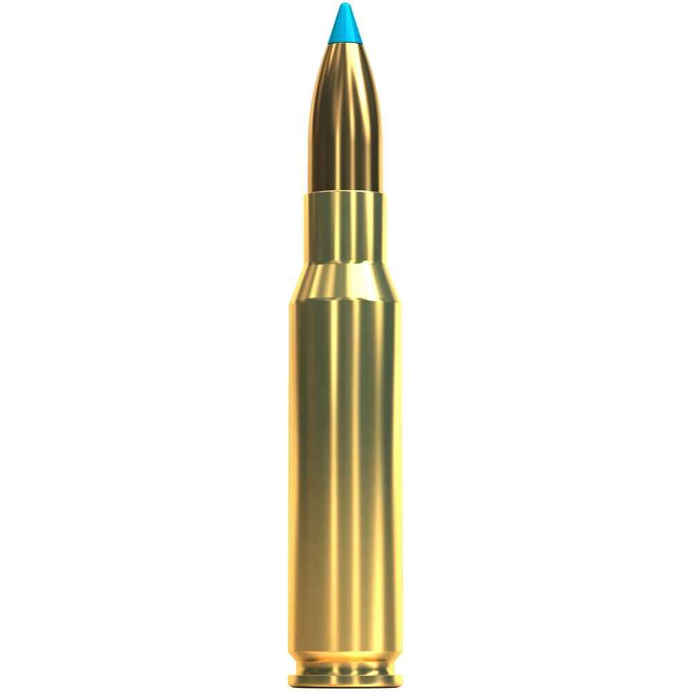 Jagdkugelpatrone mit bleifreien Tipped eXergy Geschoss. Die blaue Polymerspitze sorgt für eine stabilere und gestrecktere Flugbahn und ist daher auch auf weite Entfernungen bis 200 Meter und darüber hinaus bestens geeignet. Die neu entwickelte Spitze spricht schnell an und vereinigt die hervorragenden Eigenschaften des eXergy-Geschosses – sehr präzise, exzellente Zerlegungseigenschaften und nahezu 100% Restgewicht, zu einer der qualitativ hochwertigsten Jagdkugelpatronen auf dem Markt.