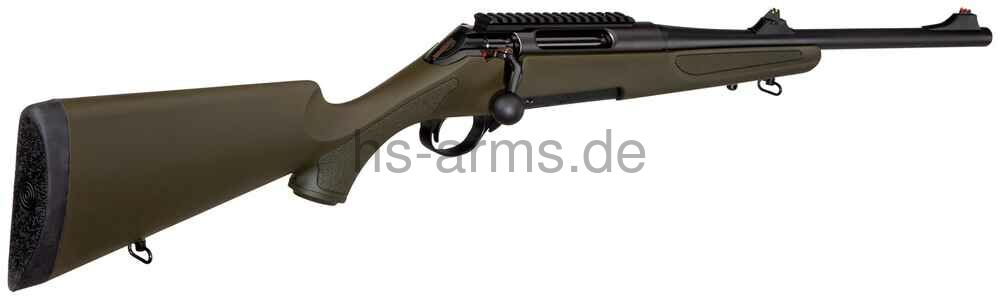 - Visierung: Serienmäßig ist ein abnehmbares Drückjagdvisier mit Leuchtkorn vorhanden, das bei Bedarf einfach demontiert werden kann, um beispielsweise einen Over-Barrel-Schalldämpfer zu montieren (Mündungsgewinde M15x1).