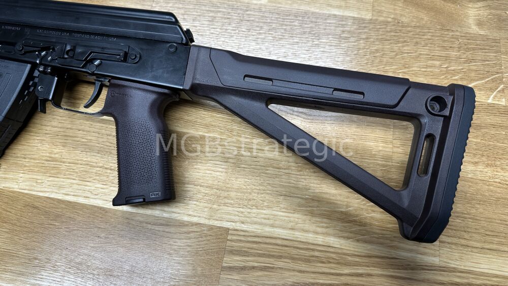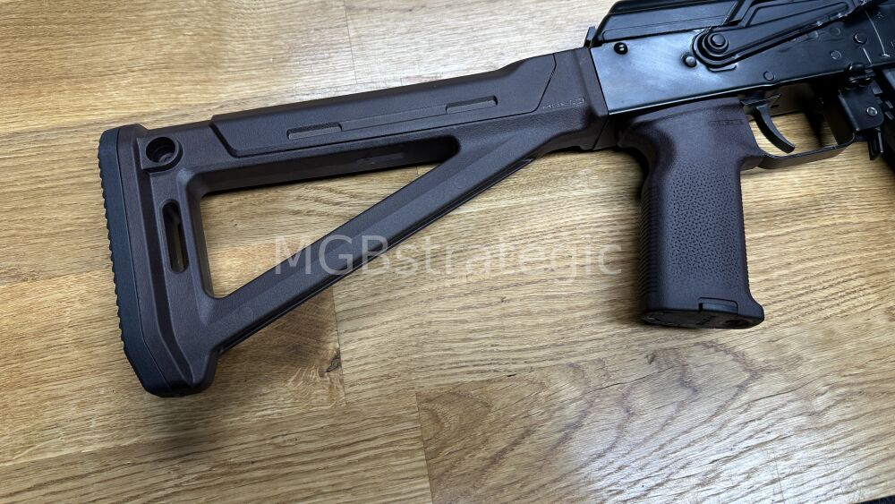 Vorteil es bieten sich mehr Möglichkeiten die Waffe nach eigenen Wünschen zu gestalten weil die AKM/AK74 Festschaftaufnahme die Aufnahme ist welche mit die meisten Möglichkeiten bietet, ob anderer Festschaft, Klappschaft oder mit Adapter auch Schubschaft.