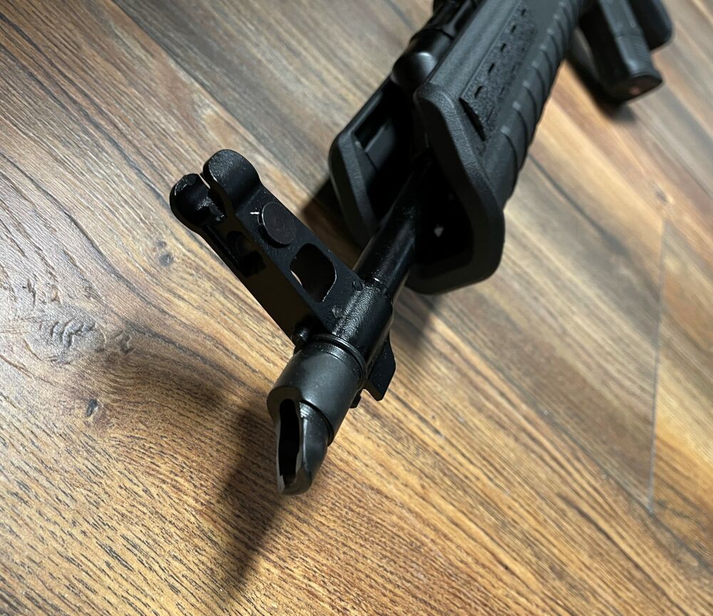 An der Mündung ist auf dem Standgewinde 14x1links ein AKM Mündungskompensator montiert.