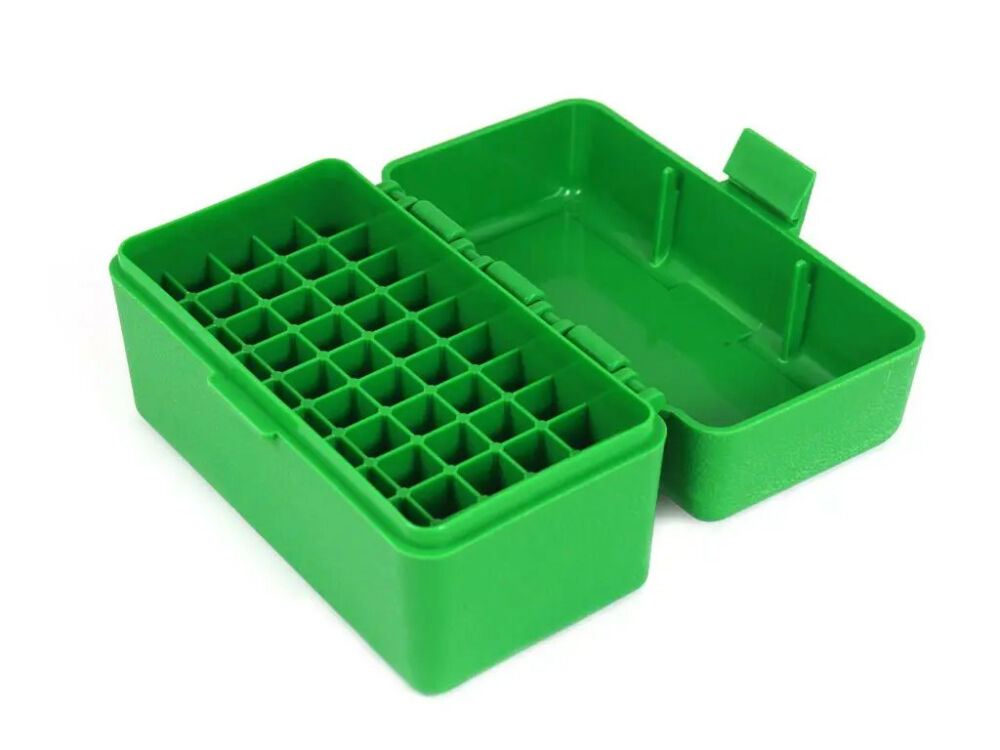 Odeon Patronenbox RS50 Grün Patronenbox für 50Patronen Kaliber 221/222/223Rem. Maximale OAL: 2,65" Ausführung mit Scharnier ...weiterlesen