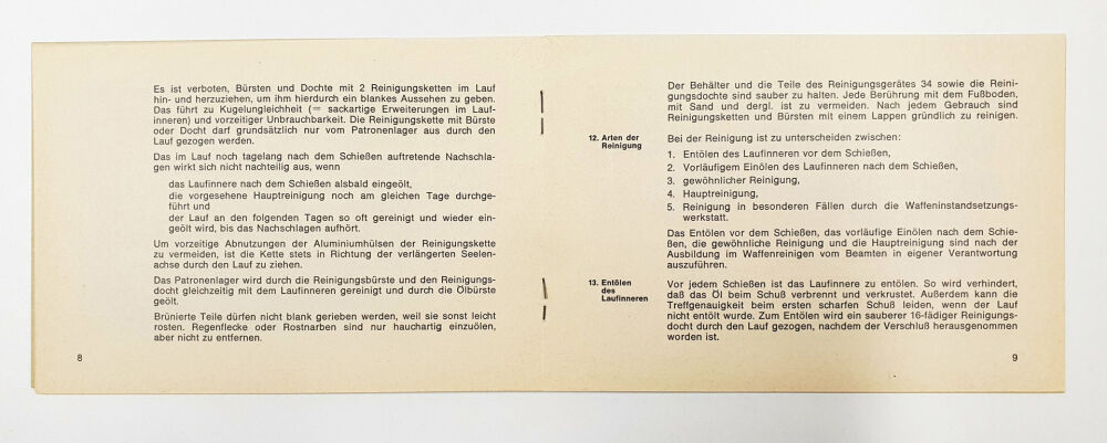 original Anweisung ( Anleitung) für die Maschinenpistole HK MP5 über die Behandlung, Pflege & Reinigung