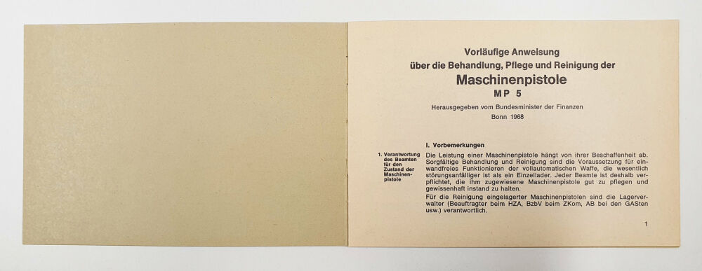 SEHR SELTEN ! Vorläufige Anweisung ! original Anweisung ( Anleitung) für die Maschinenpistole HK MP5 über die Behandlung, Pflege & Reinigung Herausgegeben vom Bundesministerium der Fin... ...weiterlesen