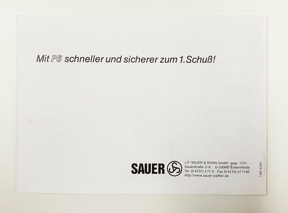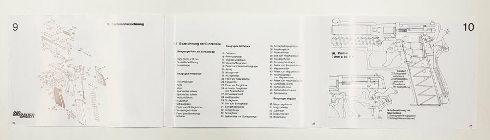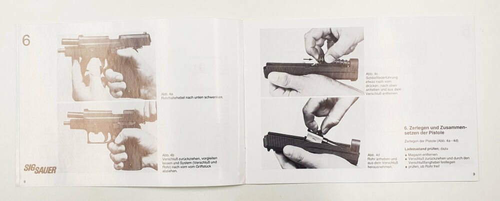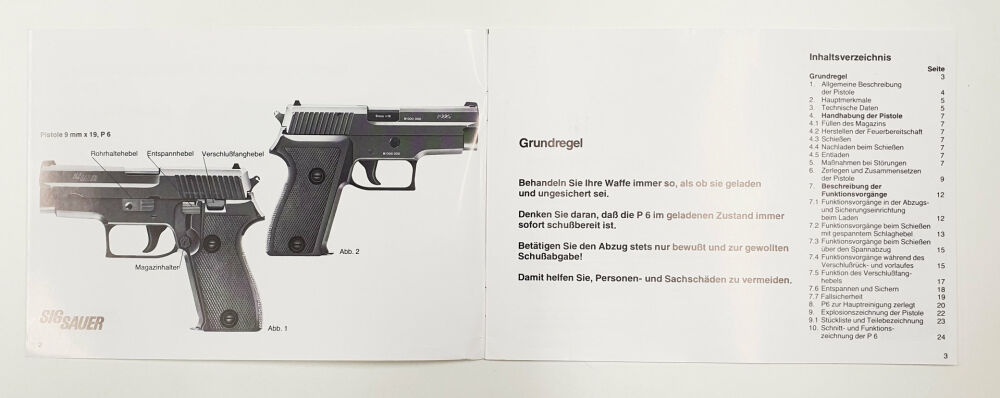 Modell: Kurzbeschreibung und Bedienungsanleitung für die Pistole P6 / P225 9mm x 19 Zustand leicht gebraucht