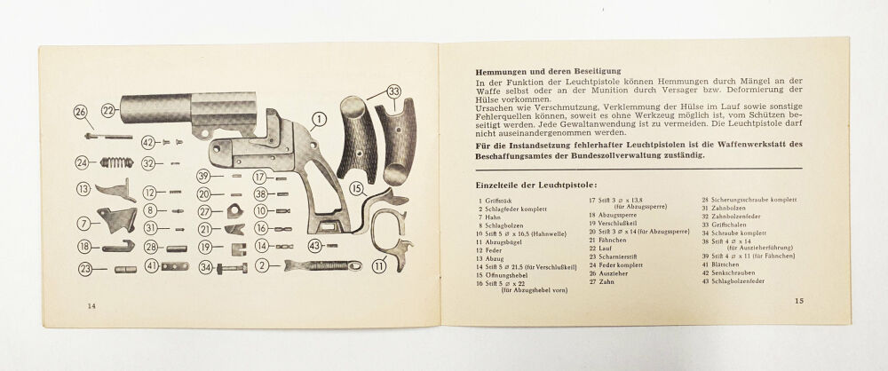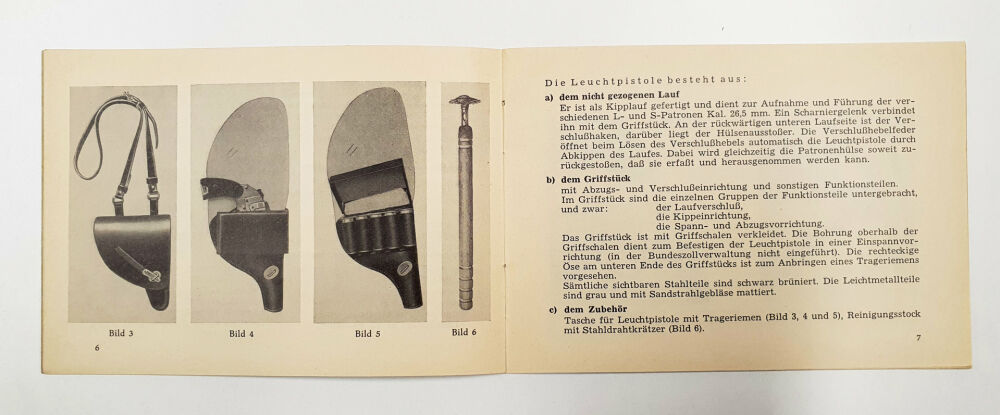 Modell: Bedienungsnanweisung Leuchtpistole Heym, Zoll Typ 3 Waffenfabrik F. W. Heym - Münnerstadt , von 1959