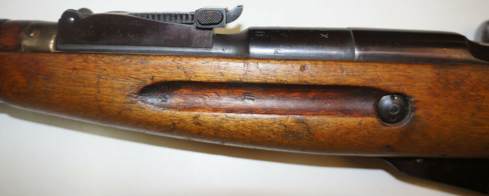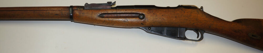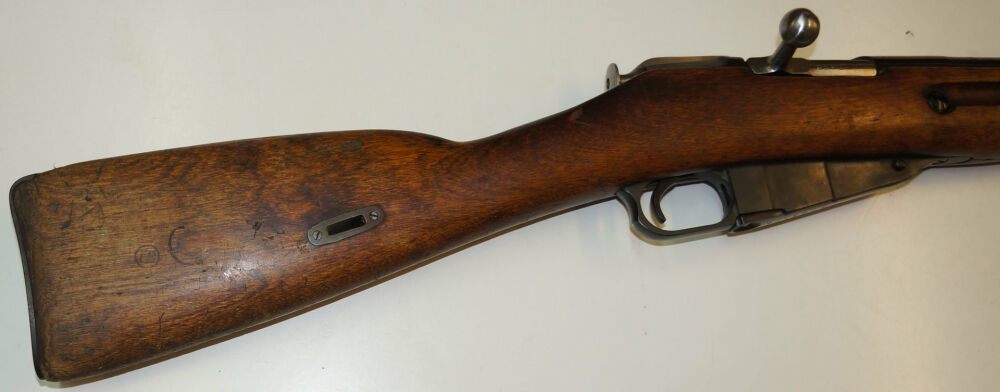 Repetierbüchse, Mosin Nagant M91/30, 7,62x54R, Baujahr 1938 (Vorkriegsfertigung), Sowjetunion. Das Mosin Nagant wurde 1891 als neue Standartbewaffnung der Armee des Zaren eingeführt und später von der Roten Armee der Sowjetunion weitergeführt. Der Bedarf an einem neuen Gewehr war nach dem Krieg zwischen Russland und dem osmanischen Reich offensichtlich geworden, da die russischen Truppen, damals noch ausgerüstet mit einschüssigen Berdan-Gewehren, schwere Verluste durch die mit Repetiergewehren ausgestatteten osmanischen Truppen hinnehmen mussten. Bei der Ausschreibung orientierte sich das russische Verteidigungsministerium stark an der Ausrüstung und den Beschaffungsmaßstäben der kaiserlich-deutschen Armee. Das Gewehr Mosin Nagant setzte sich gegen eine Reihe anderer Entwürfe durch und bewährte sich als neues Standartgewehr Russlands in vielen Konflikten, unter anderem im ersten und zweiten Weltkrieg. Zudem war es in so gut wie jedem Arsenal eines Staats des ehemaligen Ostblocks zu finden.