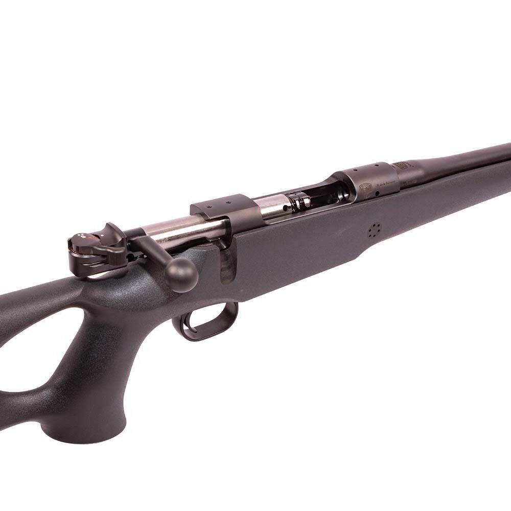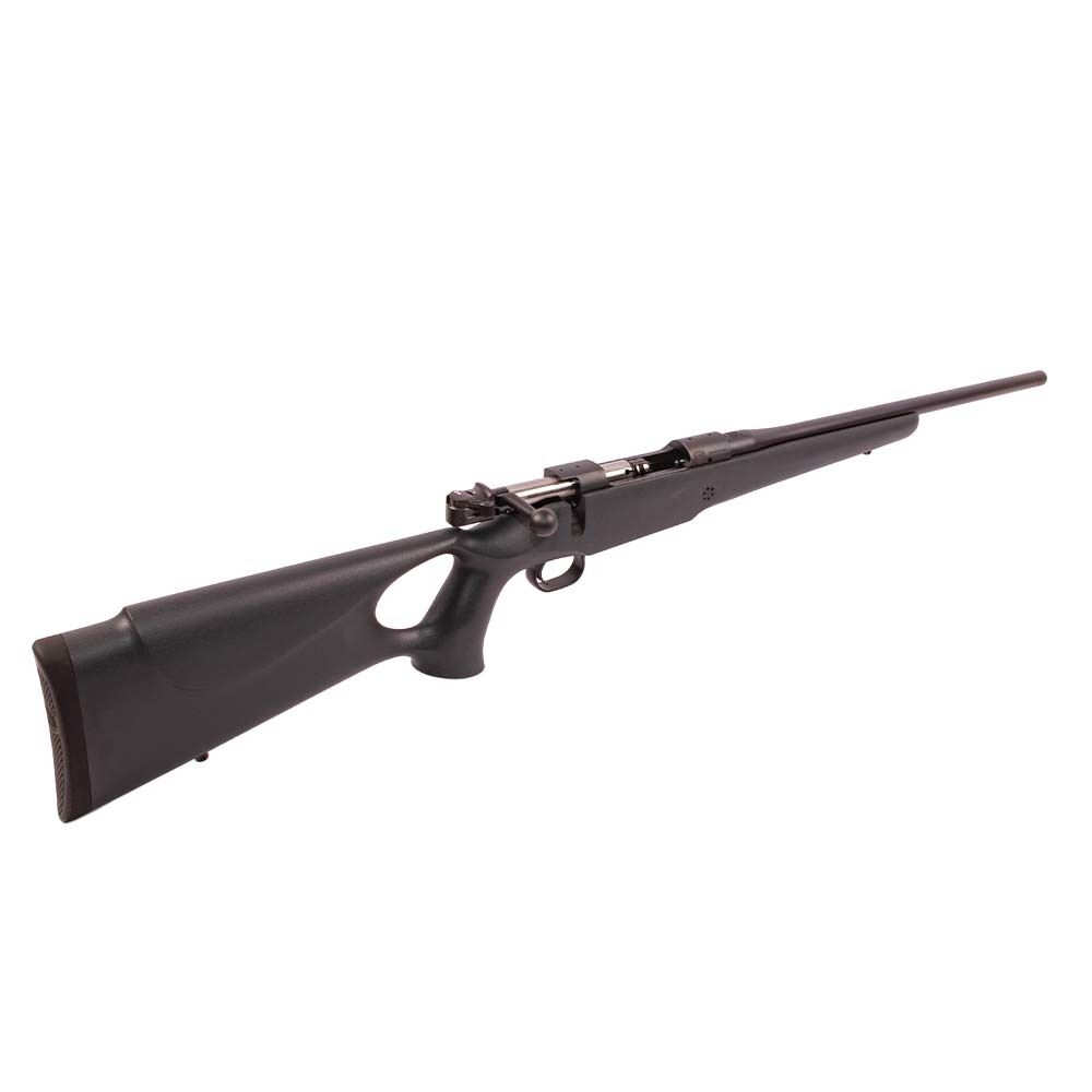 Die Mauser M12 Repetierbüchse ist das Technik Flagschiff der 12er Baureihe. Ergonomisch ist es die ausgereifteste Mauser. Das Ergebnis, maximale Lesitung für maximale Ergebnisse. Das klassiche Mauser Repetiersystem wurde mittels Handspannung zur ultimativen Jagdwaffe weiterentwickelt. Um in jeder Situation den besten Anschlag zu haben, besitzt der Lochschaft eine beidseitige Handballen-Ausformung. Damit ist die Waffe auch für Linksschützen geeignet. Als Material kommt speziell behandeltes Buche Schichtholz in grau zum Einsatz.