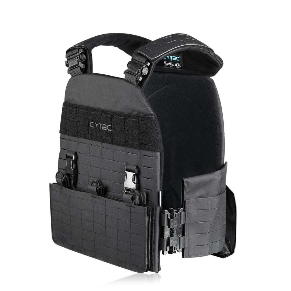 Der Cytac Plattenträger aus feuerhemmendem 500D-Nylon eignet sich für vielerlei Einsätze. Er bietet Platz für zwei ballistische Platten, die NICHT im Lieferumfang enthalten sind. Der Mesh-Einsatz unterstützt die Atmungsaktivität der Weste. Eine Vielzahl an Molle-Aufnahmen ermöglicht umfangreiches Verstauen von der benötigten Ausrüstung. Sie verfügt ausserdem übr eine abnehmbare Tasche die Platz für drei Magazine bietet. Mittels einstellbarer Schnellverschlüsse kann der Plattenträger perfekt an den Körper angelegt werden und lässt sich auch mit nur einer Hand öffnen.
