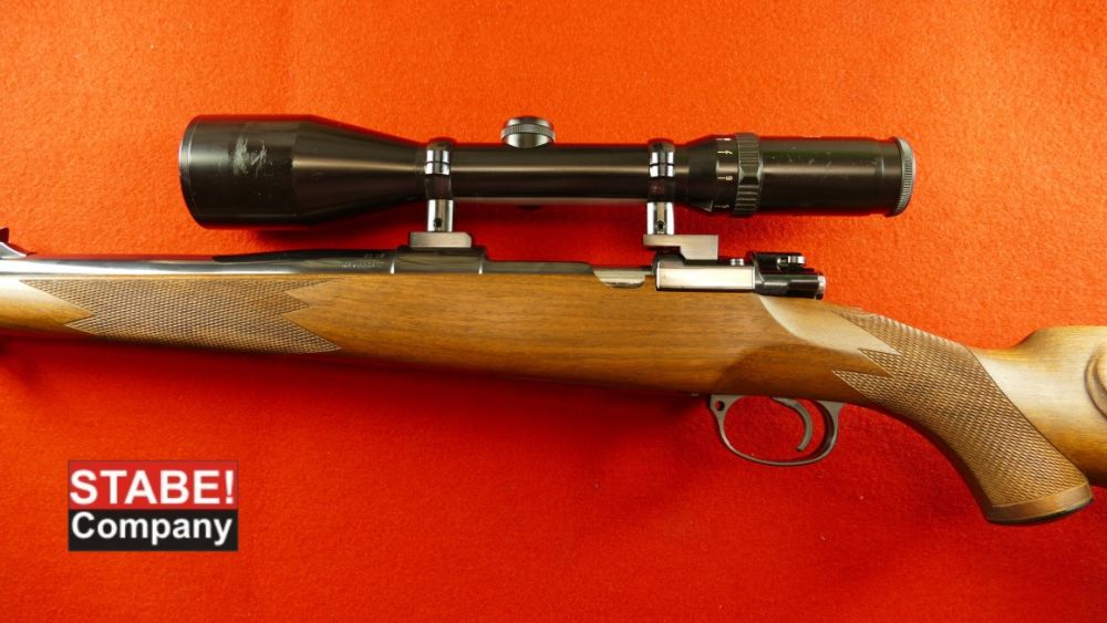 Lauflänge 65cm Semiweight einstellbarer Direktabzug Schlößchen mit Winchester 70 Sicherung glänzend brüniert offene Visierung mit Messingperlkorn hochwertiger Holzschaft mit deutscher Bac... ...weiterlesen