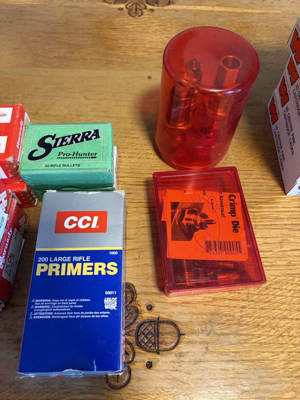 (Matritzensatz komplett, knapp 500 neue Hülsen, 200 Zündhütchen, 1.300 Geschosse)