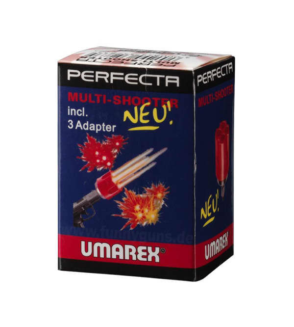Perfecta Multi Shooter m. 3 Adaptern PTB Zulassung für Waffen der Marke : Walther , S&W , Reck und Browning mit diesem Adapter können 4 Pyrotechnische Effekte mit nur 1 Platzpatronr verschossen werden; dies hilft nicht nur Platzpatronen zu "sparen" sondern, es können auch schönere Effekte selbst kombiniert werden. Angegebene Preise inkl. MWST, zuzügl. Porto