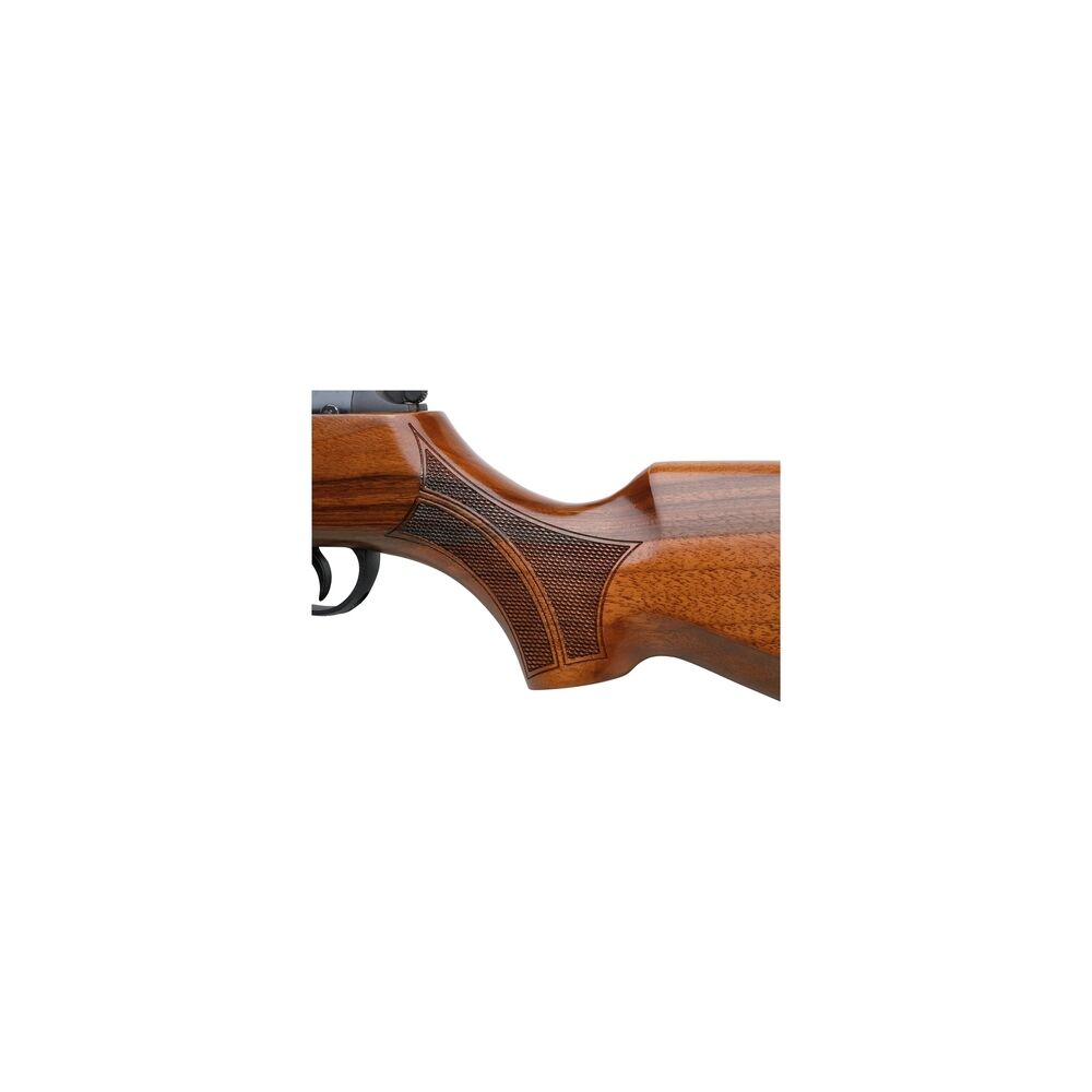 Im Lieferumfang enthalten: Hochwertiger Schaft aus ausgesuchtem Nussbaumholz mit Monte-Carlo-Backe, Fischhaut an Vorderschaft und Pistolengriff sowie Triopad-Schaftkappe für variable Schaftlänge. Mit original Truglo-Fiber-Optic-Visierung. Komplett mit Zielfernrohr 3-9x32, Montageringen, Montageblock und Mündungsbremse.