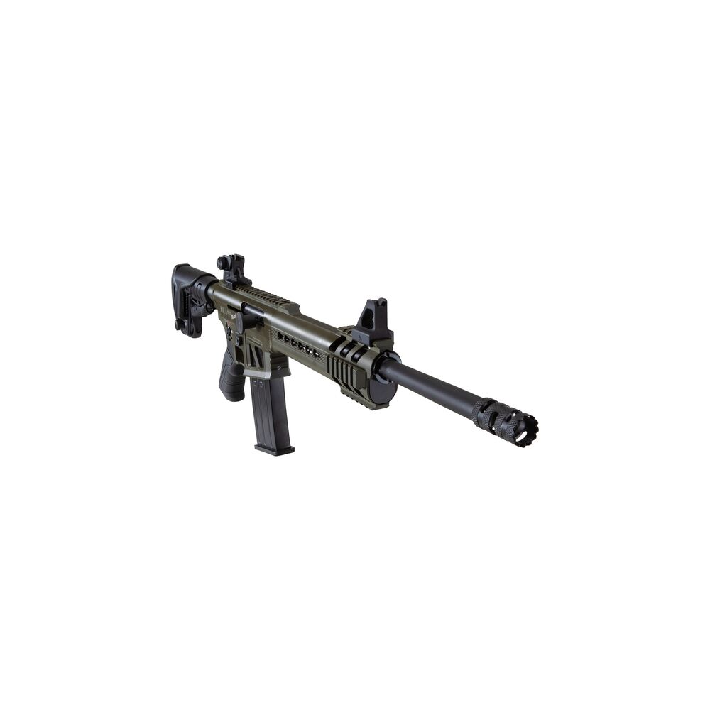 Die Sicherung, der Verschlussfang und Magazinauslöser entsprechen in Ihrer Funktion dem eines AR15/M16. Der Abzug erinnert ebenfalls stark an einen AR-15- Direktabzug. Zum Lieferumfang gehören zwei herausnehmbare Einsteckmagazine, die jeweils 5 Schuss fassen. Die Lauflänge beträgt 42 cm bei einer Gesamtlänge von 97 cm und einem Gewicht von ca. 4,2 kg. Der Teleskop-Hinterschaft ist längenverstellbar. Mündungsbremse, Einsteckmagazin sowie Wechselchokes.