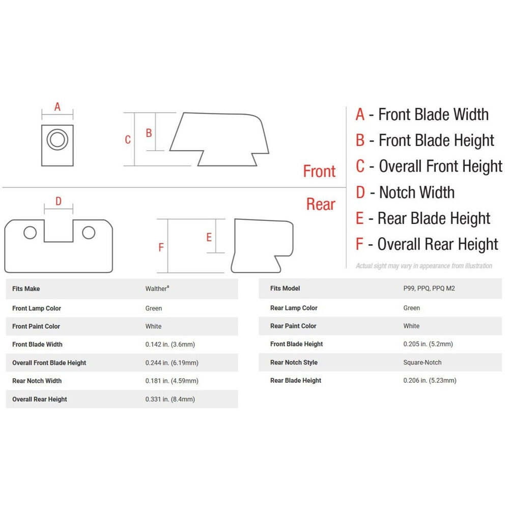 Walther Pistolen Modell P99, PPQ & PPQ M2, Bright & Tough Nacht Visierset 3-Dot grün selbstleuchtend weiß umrandet, Code WP01 Trijicon USA. Nacharbeiten sind eventuell erforderlich - eine fachgerechte Montage wird empfohlen - Teile des Original Visier werden zu Montage benötigt!