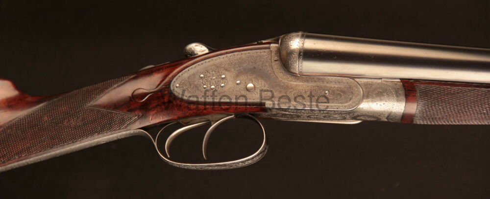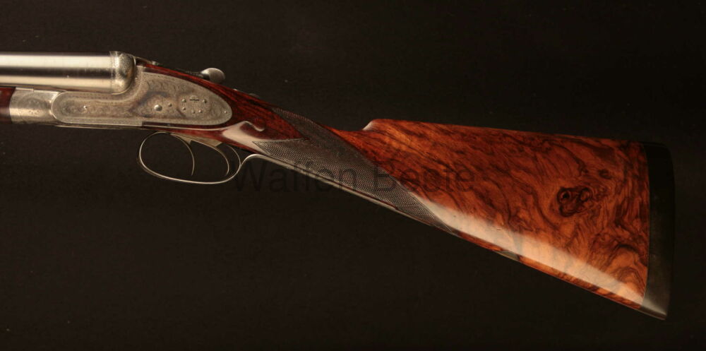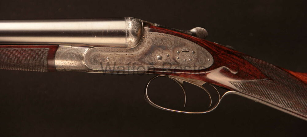 Sehr feine englische DF vom renomierten Hersteller William Powell & Son Kal 12/65 Damstläufe mit englischem Nito - Beschuss Ejektoren sehr schönes Schaftholz. Bunthärtung noch sehr gut erhalten. B... ...weiterlesen