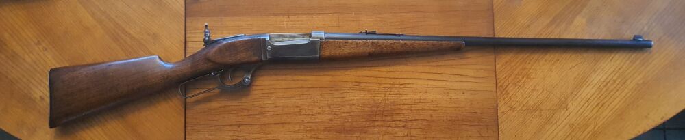 Savage 1899 frühe Ausführung mit der Messing Trommel zur Patronenzuführung und seltenem Orginal Lyman Peep Sight. Mit langem 26 Zoll Lauf.(65cm). ...weiterlesen
