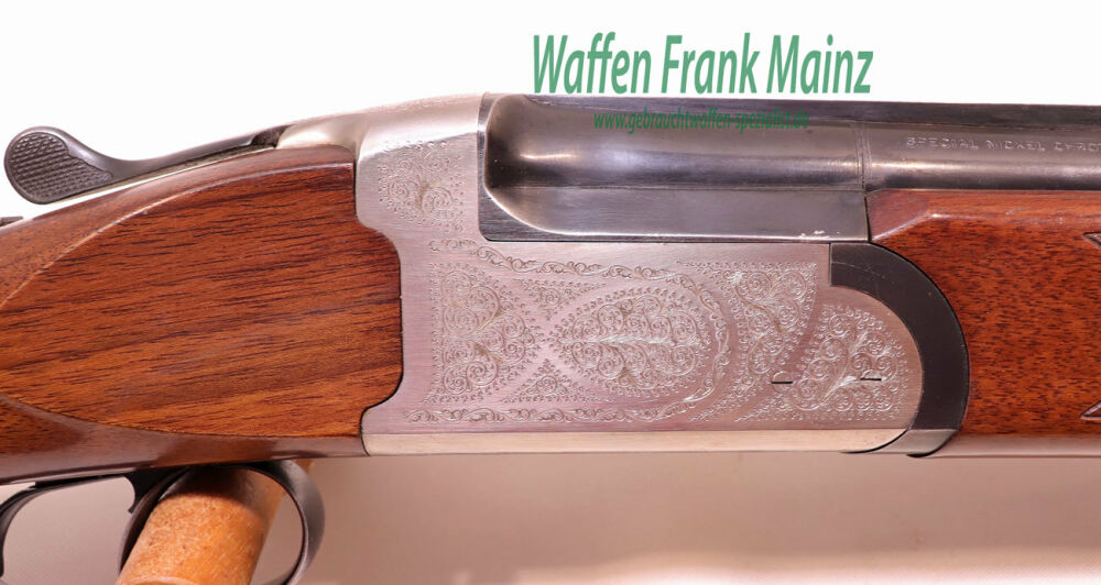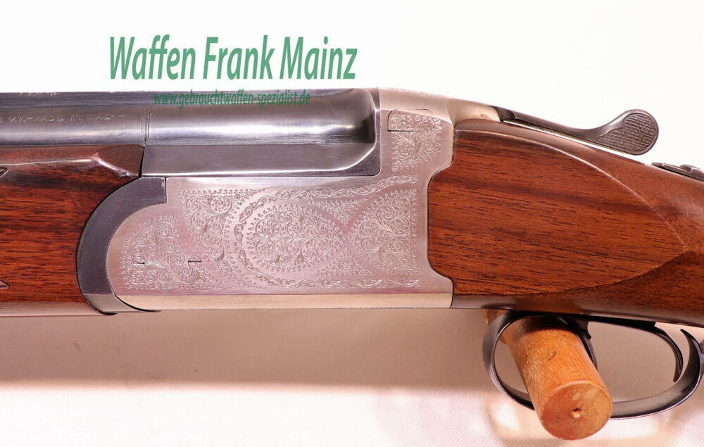 selten geschossene Schrankwaffe, mit Stahlsystem, Flanken-/Purdeyverschluss, Doppelabzug mit Ejektor, Choke 1/2-1/1, mit ventilierten Laufbanden und Laufschiene.....Univeralflinte für Jagd und Sport...