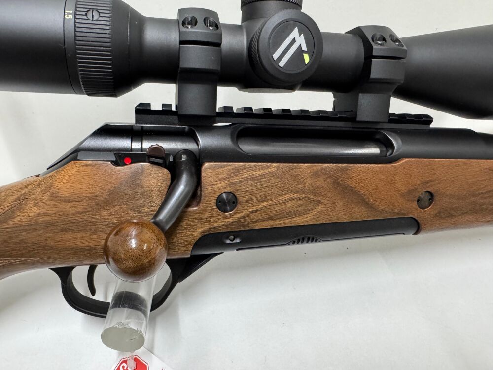 Der hochwertige Nussbaum-Schaft (Holzklasse 4) verleiht der Büchse ein elegantes Erscheinungsbild, während das M15x1-Gewinde die einfache Montage eines Schalldämpfers ermöglicht. Der präzise Feinabzug und die abnehmbare i-sight Visierung sorgen für zuverlässige Schussplatzierung, während die Picatinny-Schiene eine schnelle Optikmontage erlaubt.
